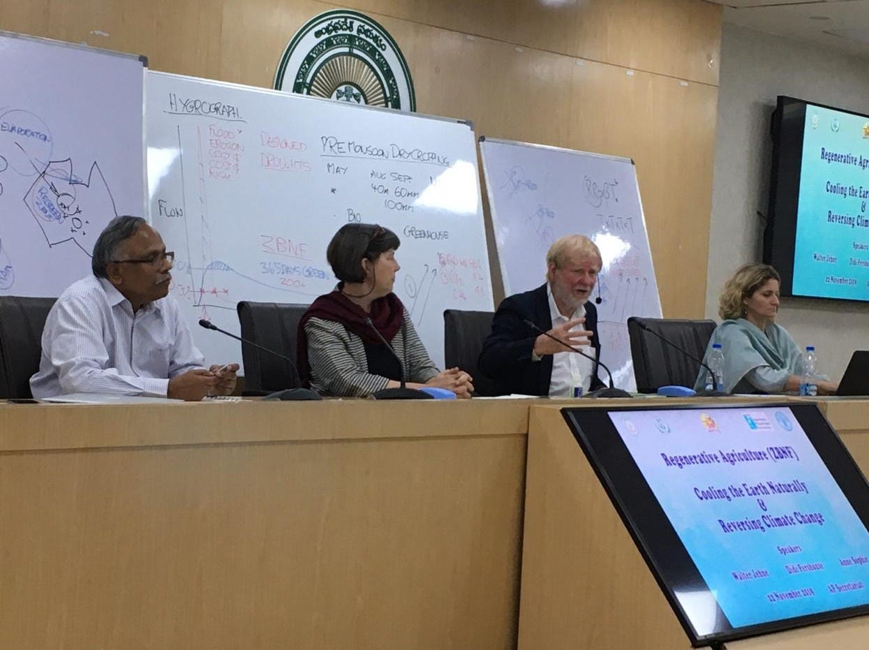 Walter—a soil microbiologist, forest ecologist and climate scientist from Australia—gave a talk called The Natural History of Water on Earth. He was only given 20 minutes to speak (having flown all the way from Australia), so he could hardly touch on his subject. But it was fascinating nonetheless: he gave a glimpse of 10 key processes we need to restore in order to restore our climate. He started with “the soil carbon sponge” as the foundation to all the hydrological processes on land, and the key intervention place for our time.